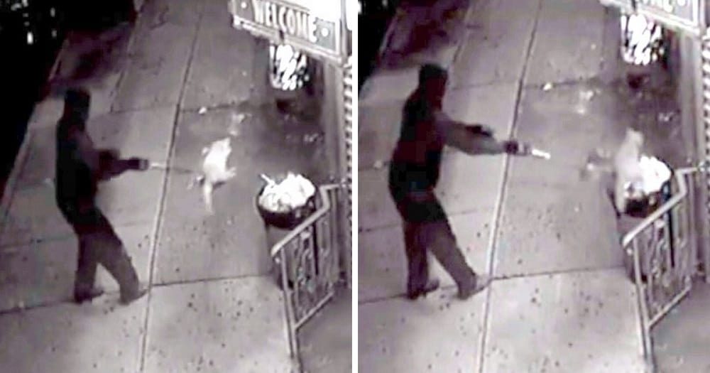 Click the video below to watch the footage of the monstrous man dumping the still-breathing cat in a trashcan.