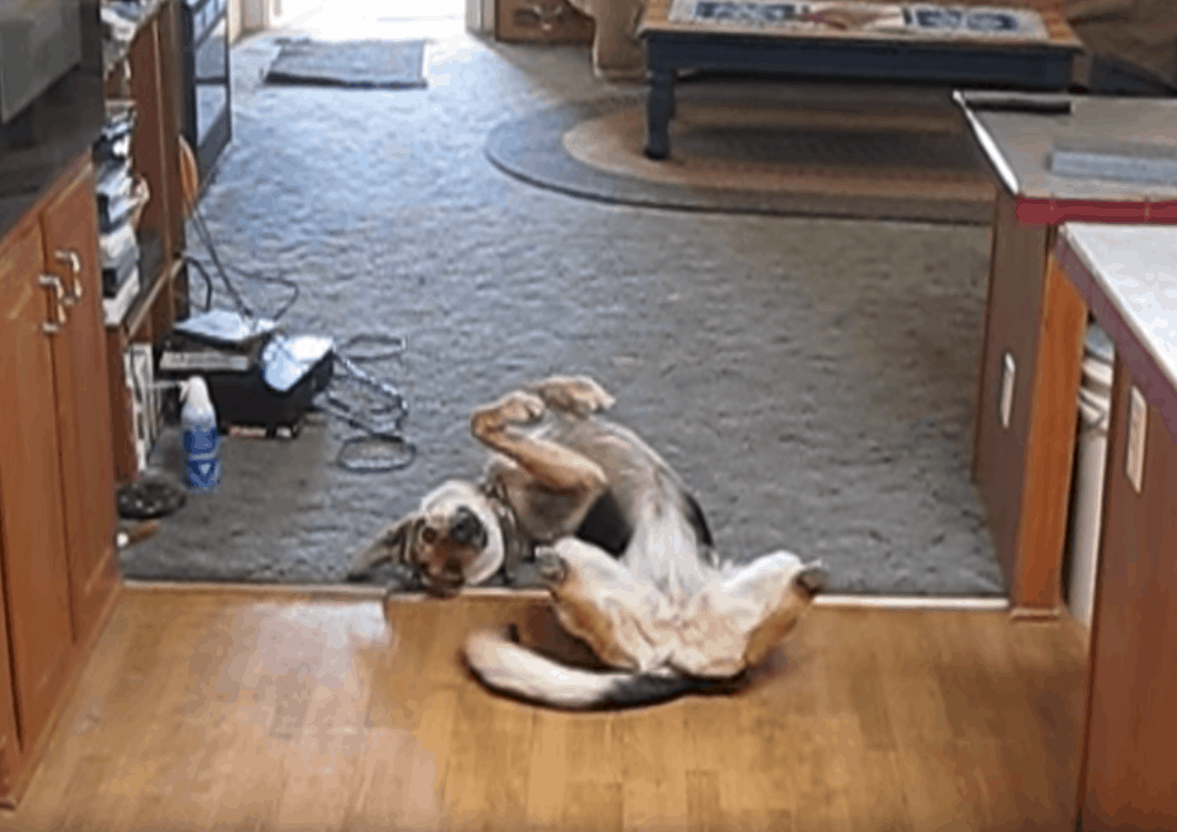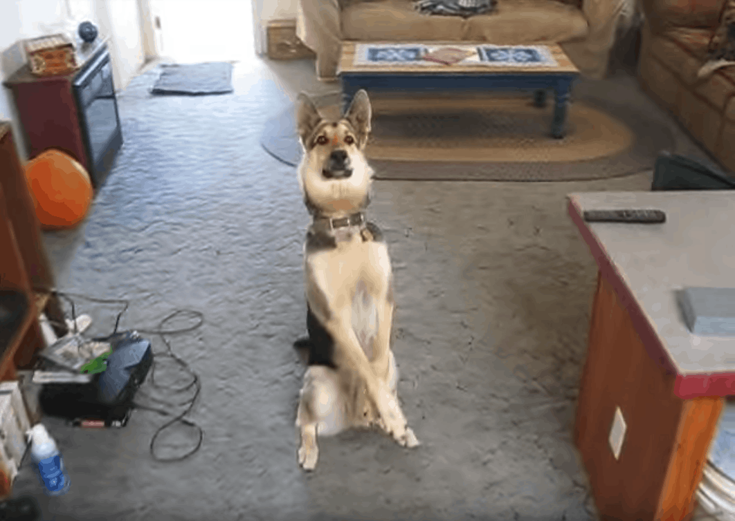 Dad starts it off by asking, “Do you want a treat, Sam?” The smart dog knows what’s about to come and gets in position. That’s when Dad says “bang!” and the German Shepherd puts on the most dramatic performance imaginable. Sam lets out a yelp before spinning around and hitting the floor, then he tops it off by rolling onto his back and putting his feet into the air!