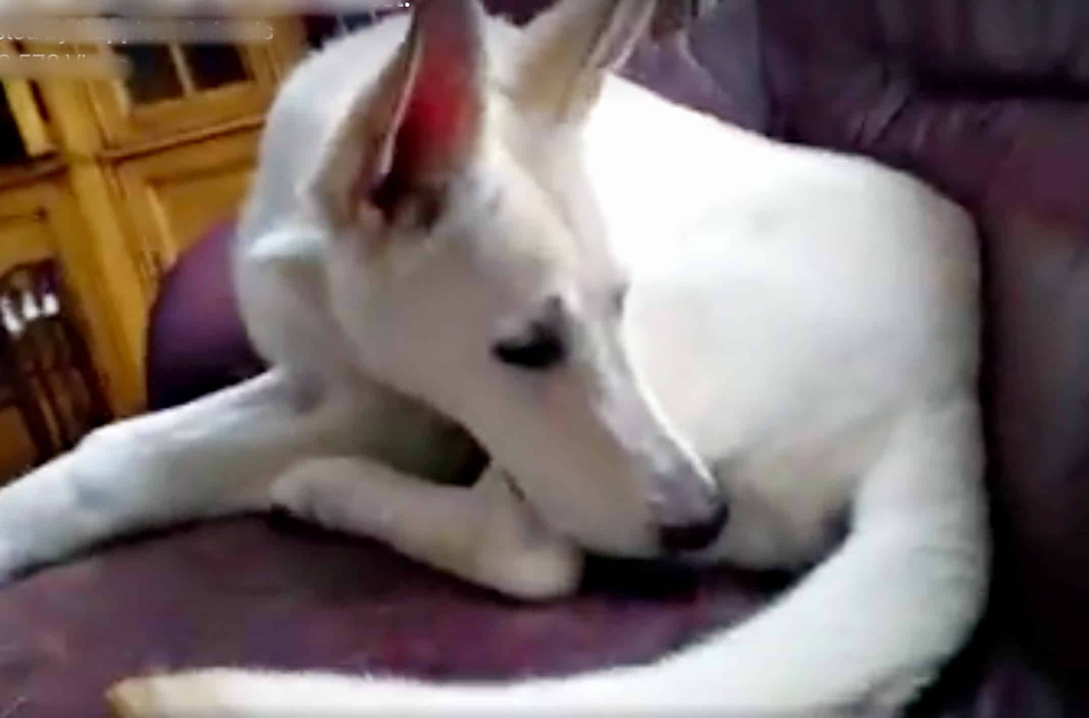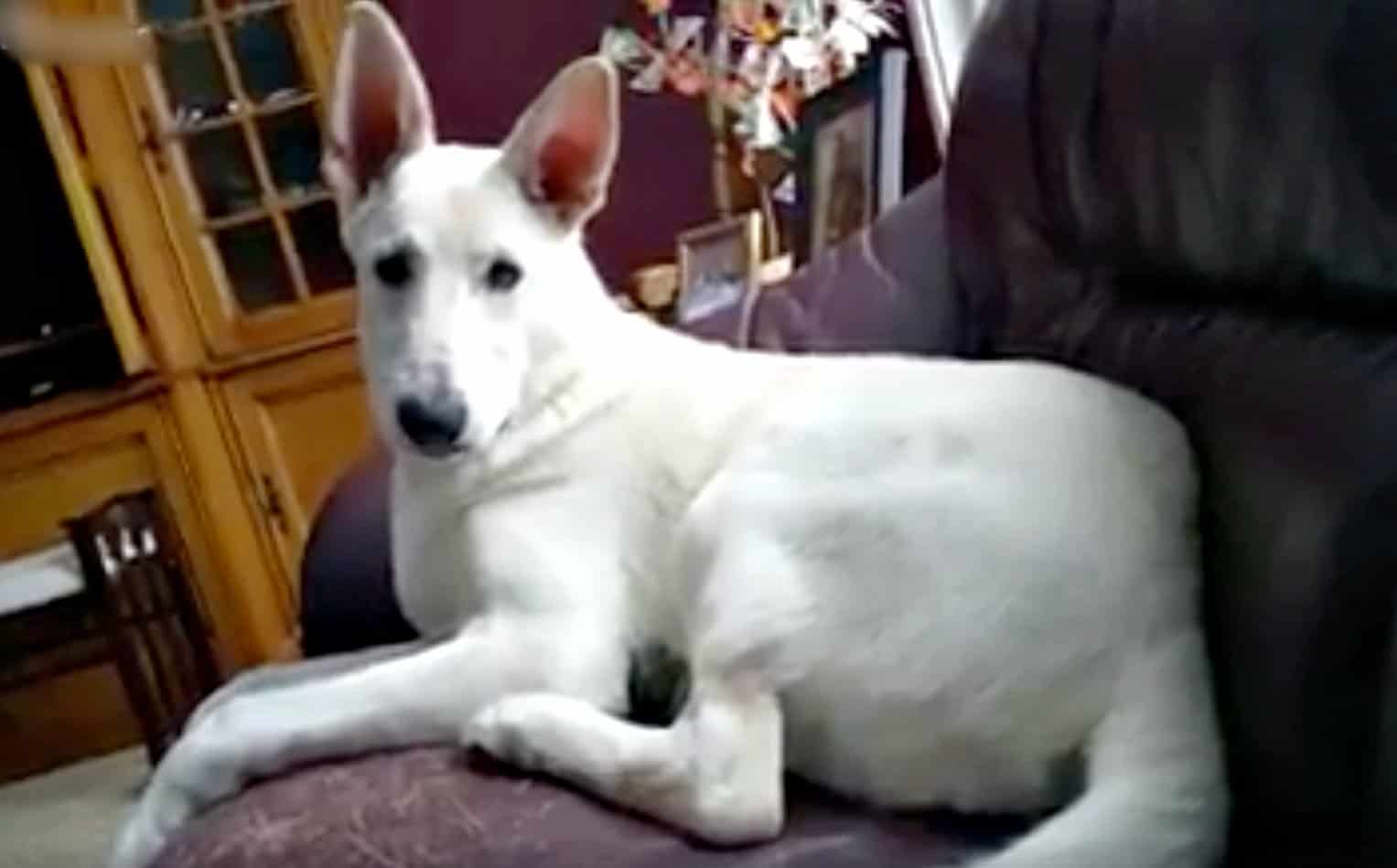 Meet Lucy! A gorgeous 7-month-old German Shepherd. She’s lounging about on her sofa when she’s totally caught off guard, by herself. Her human is filming her when suddenly the loudest, longest fart echoes in the background. Her human starts to giggle. Lucy has no idea what that sound was, then a smell wafts in her direction.