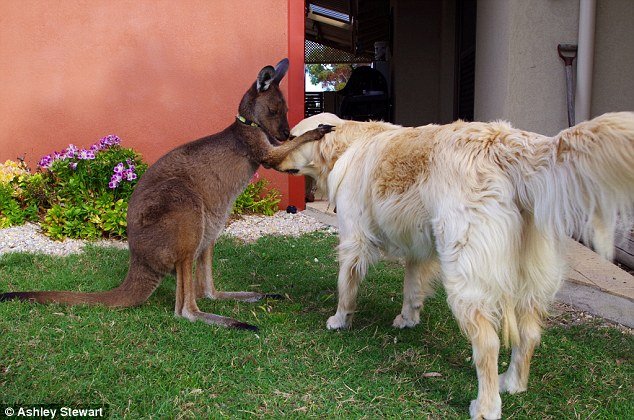 Two years ago Ashley Stewart decided to bring an orphaned baby kangaroo home. What he didn’t know was that this little guy was going to blend right in, quite literally, because he now believes he’s a dog! A Kangaroo Dog named Dusty.