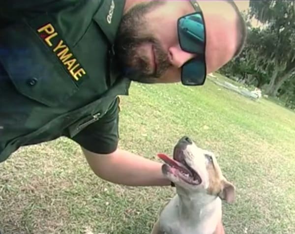Corporal Plymale with the DeSoto County Sheriff’s Office (DCSO) happened to be driving by the Union Cemetary when a man flagged him down. A sweet, friendly Pit Bull mix puppy was found discarded in a plastic bag on the southwest Florida cemetery’s grounds.