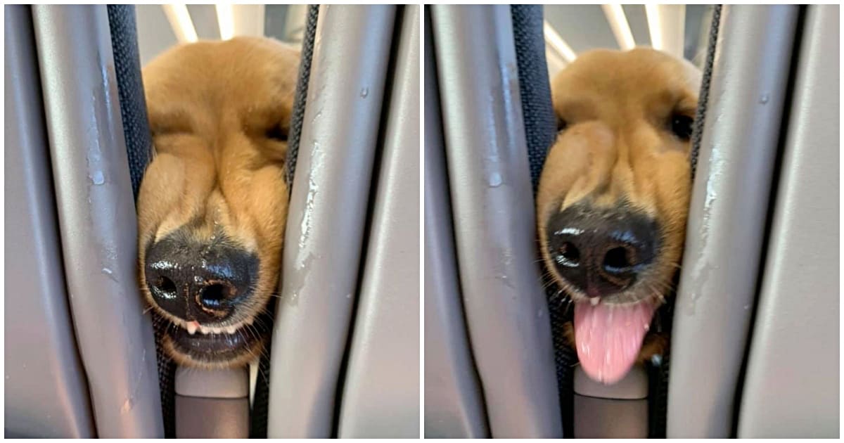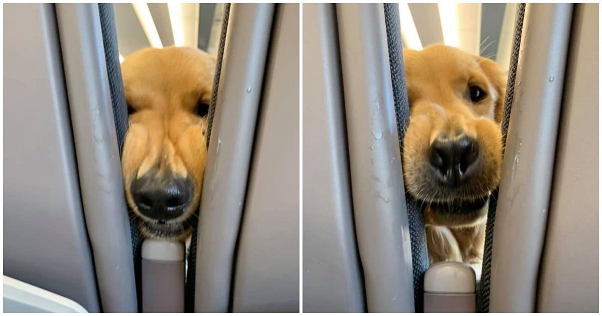 Huxley, a friendly Golden Retriever puppy, and his mom Ursula Daphne Aitchison, were flying together for Huxley’s first flight, when the pup grew very bored.