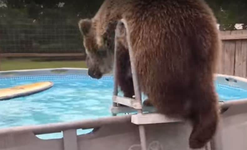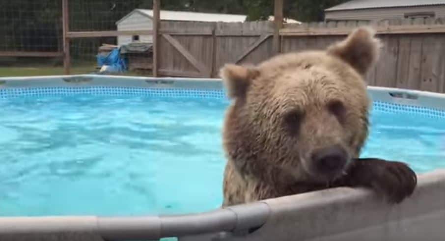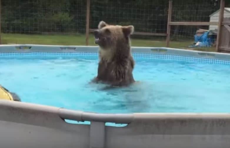 If you’re having a bad day, close your eyes and picture a giant, fuzzy-wuzzy, Grizzly Bear doing an epic belly flop into a backyard swimming pool. Or, you could just watch this video and be delightfully entertained.