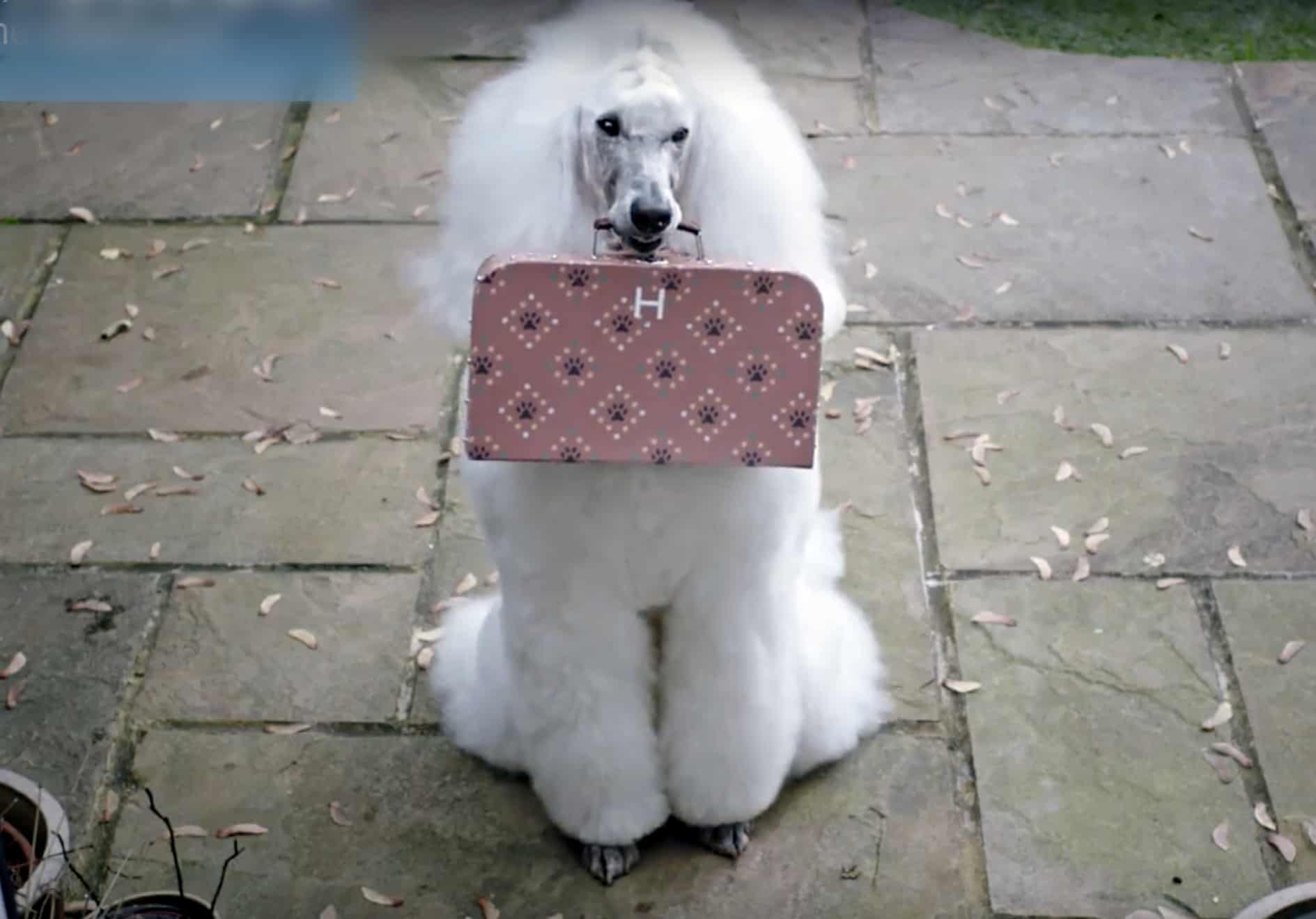 His human is, of course, a bit confused. So Harvey turns on the T.V. where Harvey and Harmony’s love story plays out. From their first meeting to their dates thereafter, you can plainly see that these two pups were meant to be together. The pawfect song plays in the background making the mood that much more… romantic!