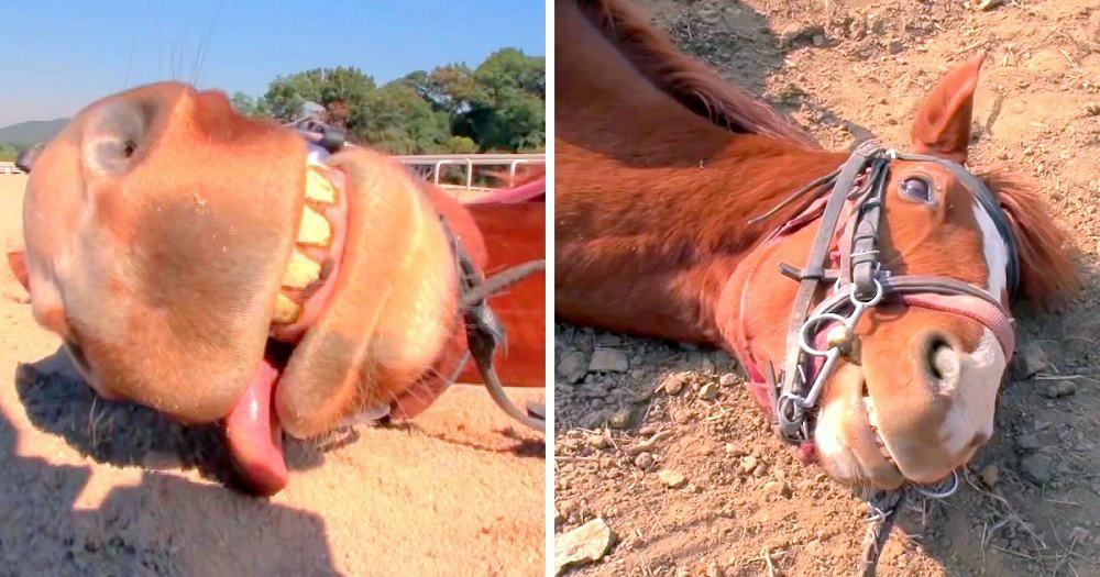 Horse Loves Fooling Humans, Cheekily Plays Dead Every Time They Try To Ride Him