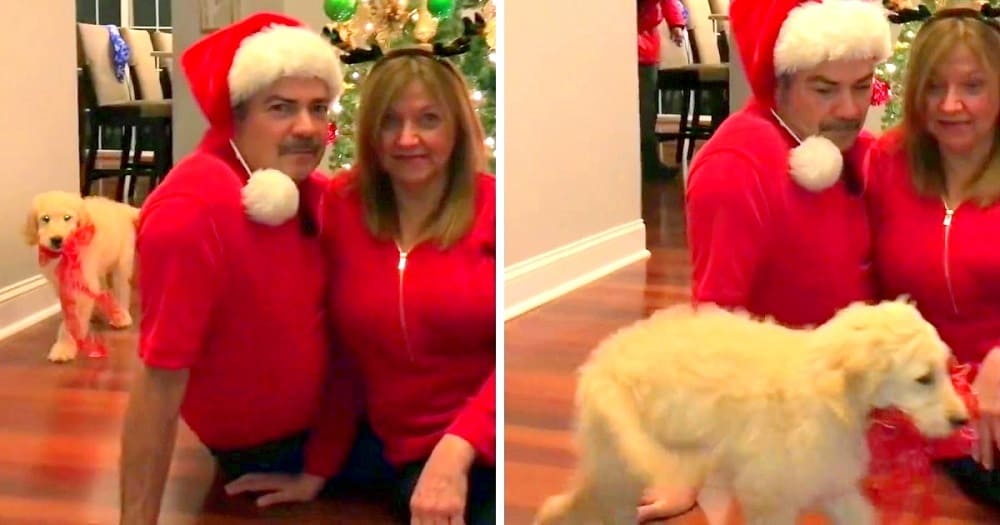 Pedro hatched a plan to surprise Dad with his favorite puppy during the family’s holiday photoshoot. In this video, we see Dad wearing his Christmas cap and getting ready for the family pictures. However, he has no idea that a Golden Doodle puppy is slowly walking up to him while he is posing for the camera!