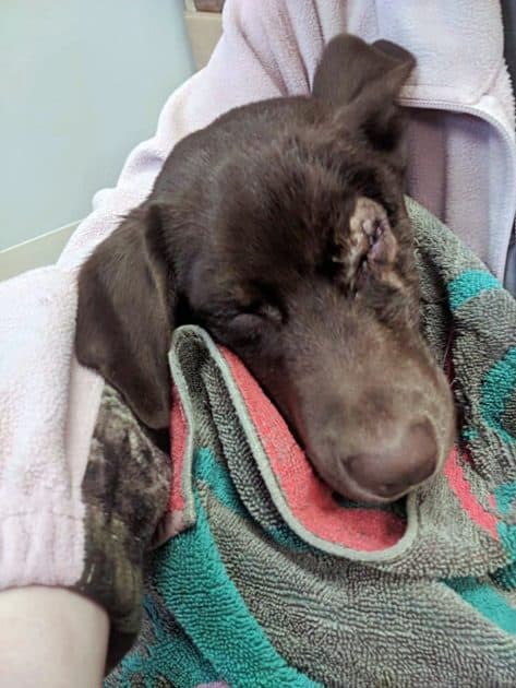The bullet left Tuff with swelling in his brain, and he sadly lost most of his vision and hearing. Although he’s now mostly blind and deaf, vets are hopeful that some of his hearing and sight will return once his brain swelling goes down.