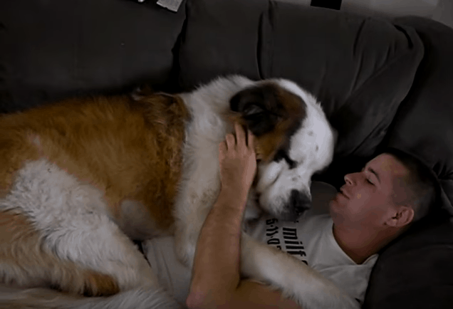 Take this St. Bernard for instance. Like many big dogs, Dozer has no idea how big he actually is. And he never lets his large size dictate what he can and cannot do. It’s pretty inspirational actually. Dozer weighs in at a whopping 240 pounds! WHOA! But even at 240 pounds, Dozer is convinced that he’s a lap dog. And who can blame him, really? Dogs love to be as close as possible to their humans and we love to be as close as possible to them.