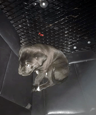 Amanda Belcher told police that the man approached their car, which had run out of gas, and threw the puppy toward her car. The pup bounced off the hood, squealed in pain, and went underneath a car, where he shook in fear.