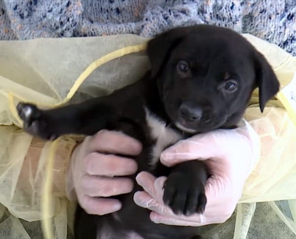 The puppy is around seven weeks old and thought to be a Lab mix.