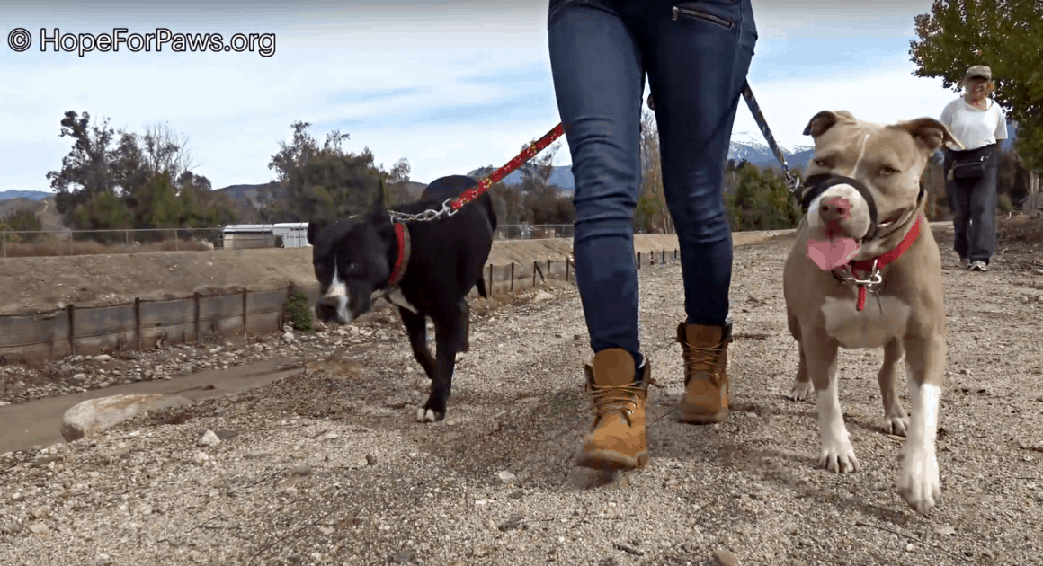 Hope For Paws received a call from a man regarding two dogs who had been homeless for two years in Los Angeles, California.
