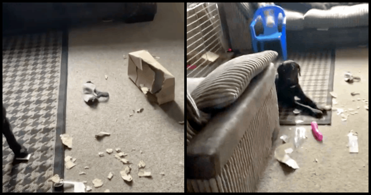 Lee Edwards, 36, and his partner Jenna Crozier, 34, did the neighborly thing and took in a parcel for a resident who lives down the street. The package was placed safely behind their door, away from thieves and the elements. Except the parcel wasn’t safe from their four-legged package thief, their 7-month-old puppy, Bonnie.