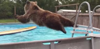Massive Bear Jumps Into Swimming Pool – But When He Turns Around, Owner Can’t Stop Laughing