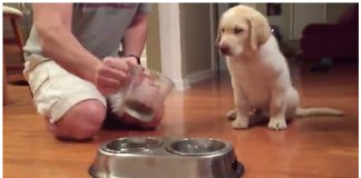 Dad Poured Food For His Puppy And He Won’t Eat Without...