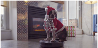 Dog In Santa Suit Takes A Ride On A Roomba For...
