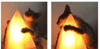 Young Cat Found Blissfully Hugging Warm Lamp