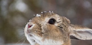 A rabbit loving the snow