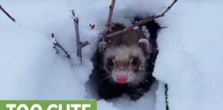 A ferret discovers snow for the first time