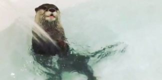 Otter having too much fun in a bath!