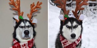 Unimpressed Husky Reluctantly Goes Along With Family’s Christmas Card Idea