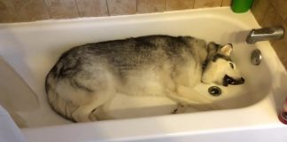 Mom Pulled Back Shower Curtain To Find Husky In Tub, Throwing...