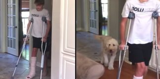 Funny Dog Mocks Human Brother’s Broken Leg ‘Walk’ Behind His Back