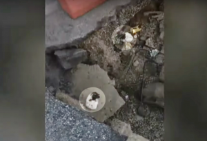 In either case, these two puppies ended up under a busy roadway, in a tunnel beneath. There was little oxygen and it was only a matter of time until the puppies’ health declined. Rescuers were called in and brought supplies. They placed food at the mouth of the tunnel hoping the wee ones would smell it and come out.