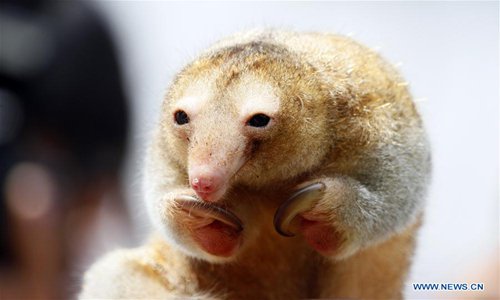 The silky anteater (Cyclopes didactylus), also known as pygmy anteater, is the only living species of anteaters in the Cyclopes genus and Cyclopedidae family. The animal is mainly found in South and Central America. With proportionately larger crania and shorter faces, the silky anteaters are the smallest living anteaters compared to other species. The adult anteater can grow to a range 14 to 18 inches from head to the tail and weighs about 0.35 to 0.8 pounds. The animal has a dense and soft fur whose color ranges from yellowish to gray with a silvery luster. It has black eyes and red soles on its feet. Silky anteaters inhabit a broad range of forest types including mangrove, semi-deciduous and tropical evergreen forests at an elevation of 4,900 feet.