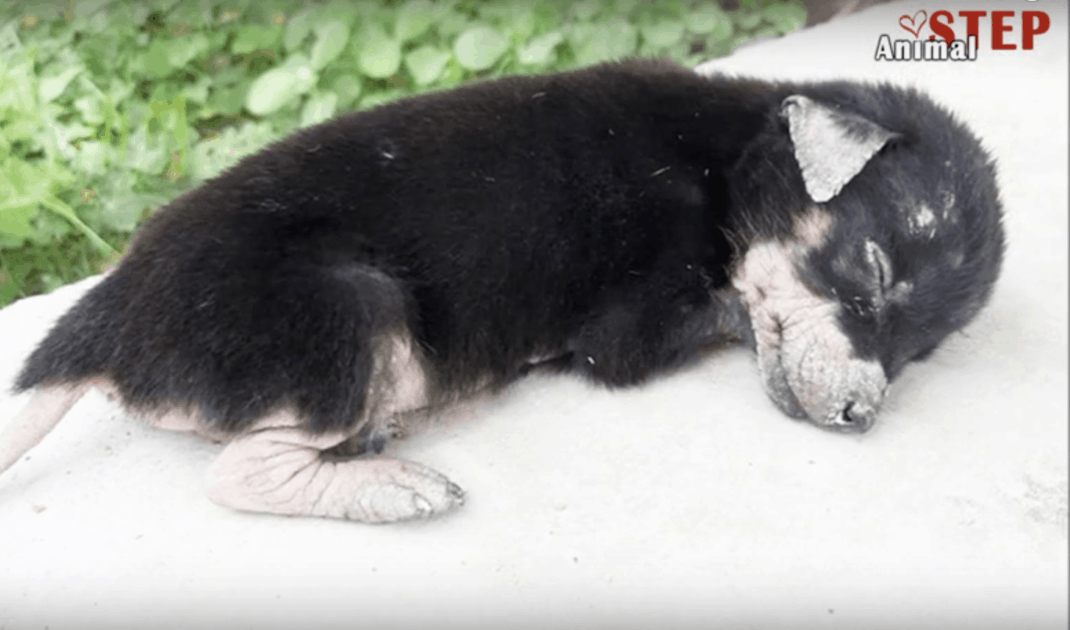 Upon arriving, the rescuers couldn’t believe the animal had survived this long! He had a fighting spirit which gave them hope. The baby was exhausted and as soon as he felt safe, he fell asleep. The rescuers thanked the kind people who found him and assured them that he is, indeed, a tiny puppy.