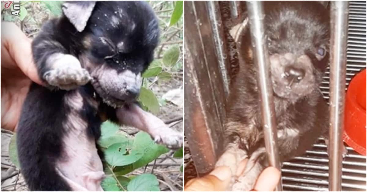 When someone finally spotted him, they called a rescue group immediately. They didn’t even know if he was a puppy for sure. He looked like a rat or some other mammal. His mange had caused his fur to fall out and he was small.