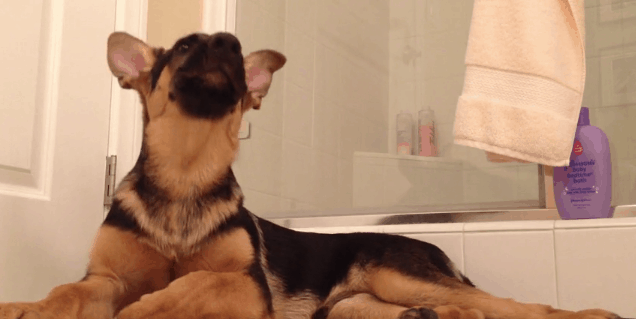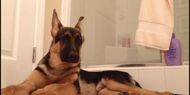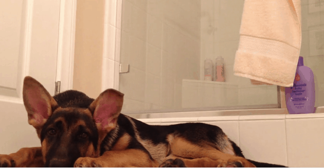 Most people feel the same way. So does the guy in this video… his German Shepherd, however, does not agree. Meet Maximus, a lovable dog who likes to hang out in the bathroom while his owner showers. He proves how truly loyal he is to his owner by lying there and not running for the hills despite his owner’s not-so-great singing. How do we know he doesn’t like it? Just watch his reaction! ????