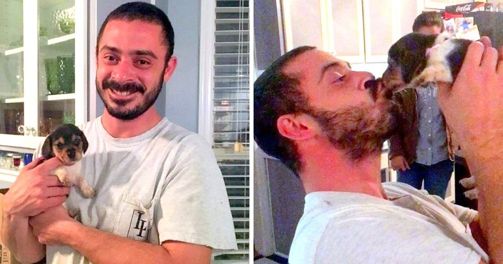 Thankfully, Peter’s mom, Dena, knew just the right thing that would help her boy cope with his demons. She remembered that Peter had a Beagle companion while growing up but the dog had died while he was away at war. So she decided to get him a Beagle puppy before Christmas, and surprise him with a gift-wrapped pre-Christmas puppy-present!