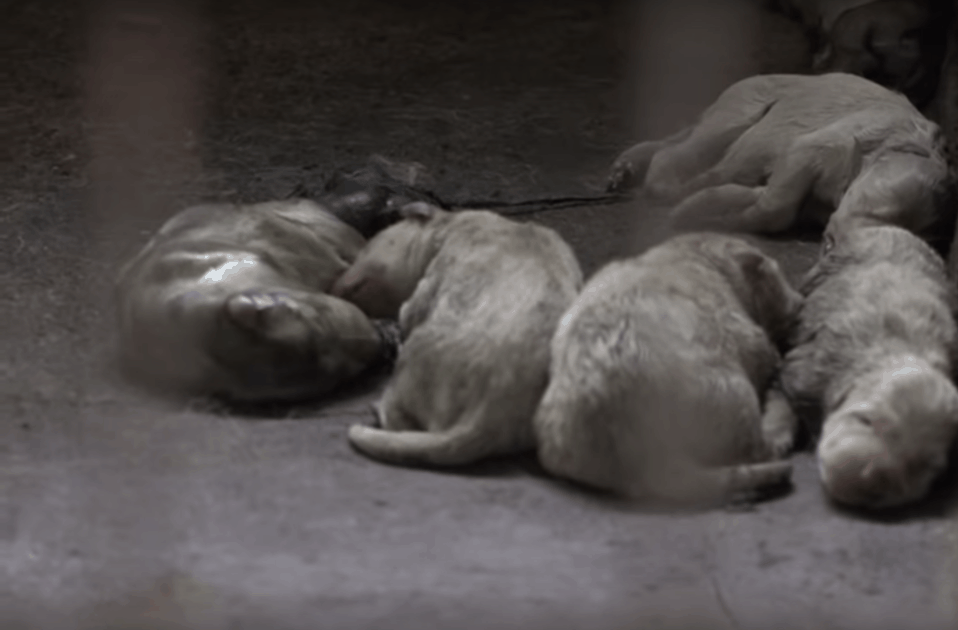 The advocacy group urged the farmer to open the cage so they could save the puppies. They managed to save half the litter. Sadly, it was too late for the others.