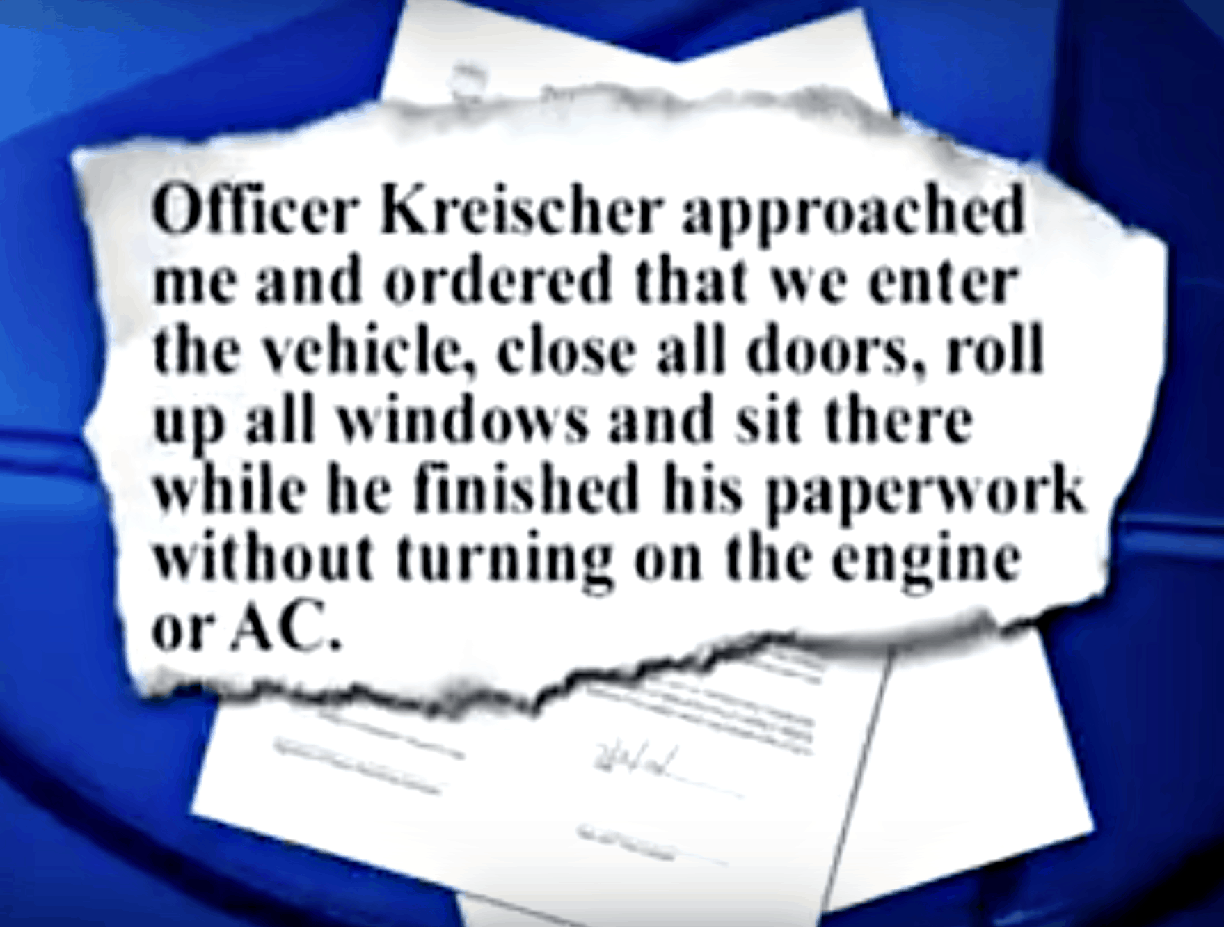 Nicholas’ version– While Officer Kreischer was writing the ticket, he got angry and demanded Nicholas go inside the hot vehicle. He then supposedly ‘locked her inside’ and made her remain there with the windows rolled up and the car turned off, until he finished writing up her citation.