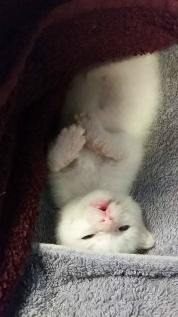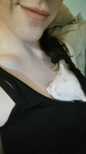 “I made sure it wasn’t due to hunger, since kittens cry horribly when their bellies are empty. Sure enough, he’d reject the bottle and just chill on me instead.”