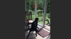 Holly’s cage is on the top of the placard in the bedroom and the German Shepherd gazes adoringly up at her. When mom then asks Skottke to say “Hi” to her baby, she raises her front two legs up the placard in order to say ‘Hello” and get a better look at her.