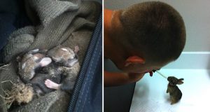 This cat just gave birth to her babies when she notices a baby rabbit who looked like he’s in need of help. Snuggle Puss knew exactly what to do in this situation. Her mother instincts kicked in and quickly decided to become this infant rabbit’s surrogate mom.
