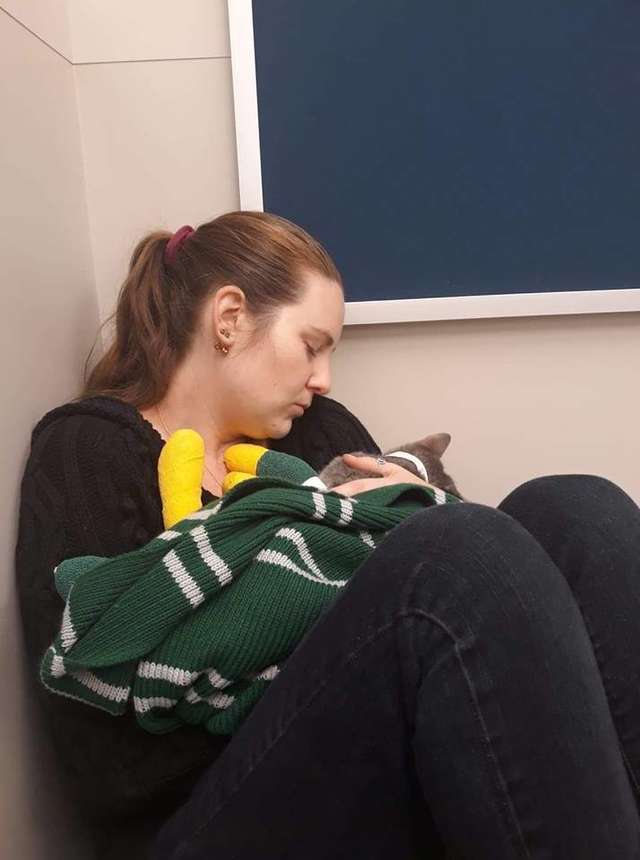 Once he realized it was her, he curled right up onto her chest ❤️