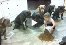 4-Year-Old Dumps Food On The Kitchen Floor – Now Watch The Pit Bulls’ Reaction
