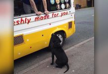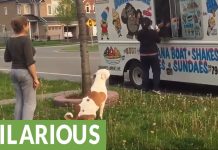 After hearing the ice cream truck’s famous “theme”, this adorable Pit Bull couldn’t help but run over for a cone. Watch as she patiently...