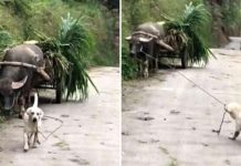 Impatient Dog Takes The Buffalo’s Rope To Usher Him Home And Stop Him From...