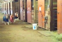 It is too snowy and icy outside, so these adorable miniature horses were forced to stay inside, but this didn’t stop them from exercising...