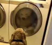 Adorable Dog Gives Moral Support To Favorite Toy Stuck In Washing Machine