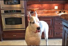 Patience is a virtue, but, this dog obviously doesn’t think so. As dinner time is approaching this great Dane can’t wait for his meal...