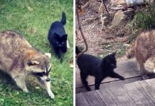 Woman Feeds Blind Raccoon, Then Sees Him Bringing His 2 Tiny “Bodyguards” To Help...