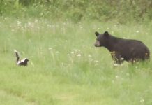 Young Bear Meets Skunk For The First Time