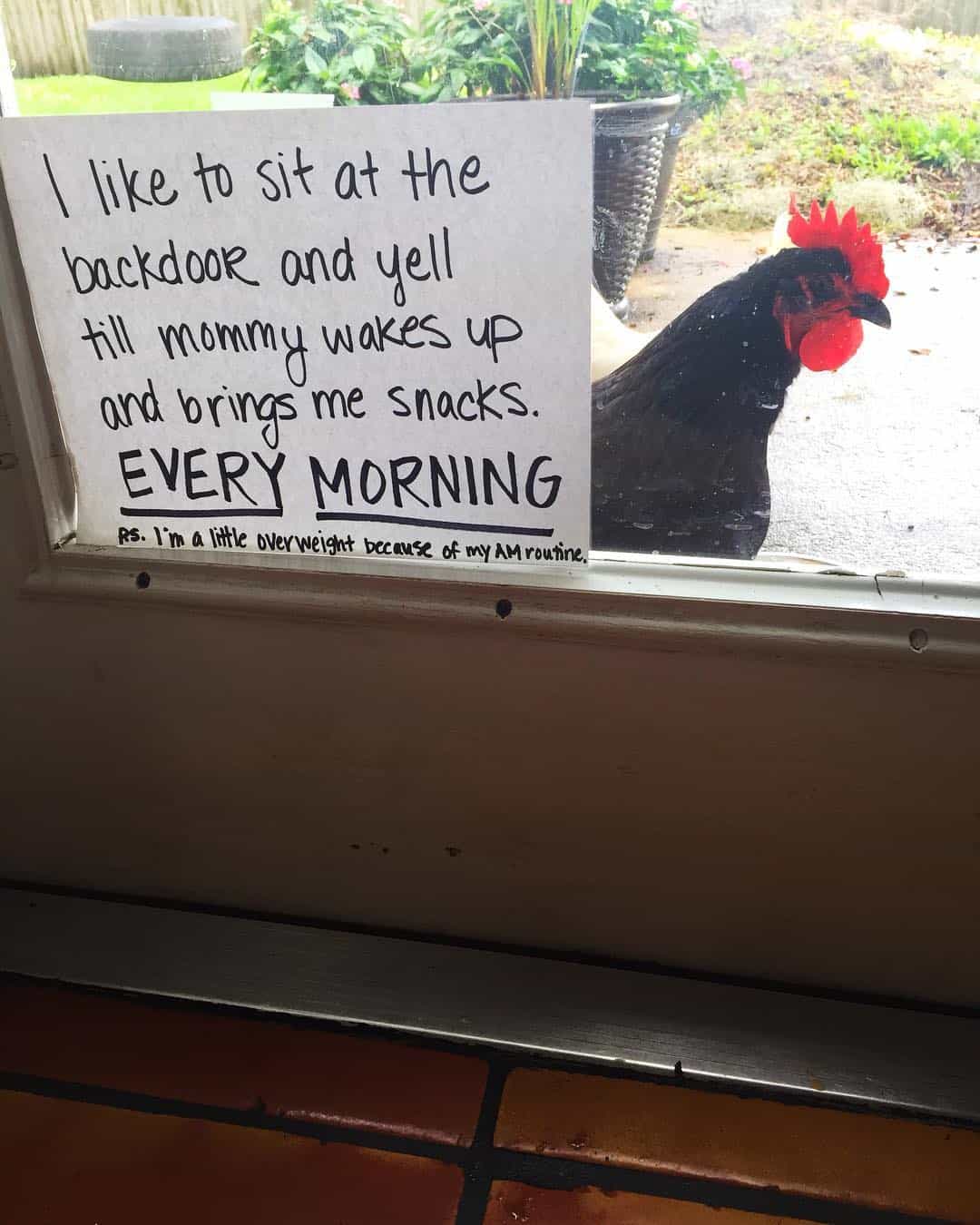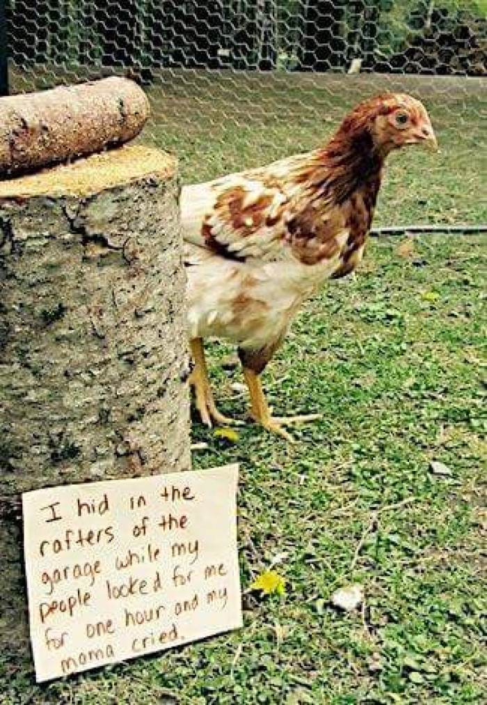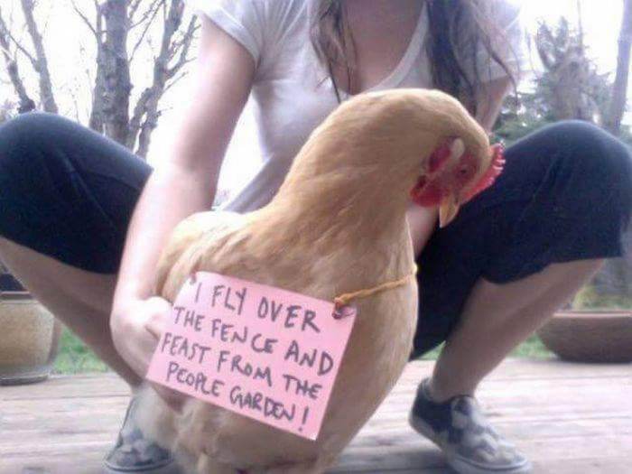 Our collection below is, dare I say, even better than dog-shaming. If you love animals and have a penchant for backyard coops, chicken-shaming is for you. With a unique set of hilarious mischief, chicken-shaming will have you on the edge of your nest waiting to see what’s going to be popping out next.