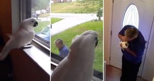 Onni is a one-year-old umbrella cockatoo. This bird loves his dad so much that he waits for him all day long and can’t hide his excitement once he sees him coming back home from work.. You have to see to believe it! The reaction he gives when he spots his dad walking up the driveway to the house is too awesome to miss!