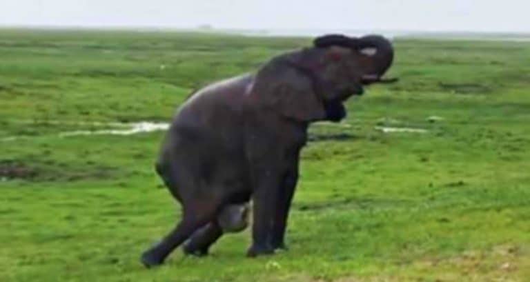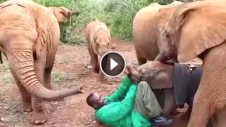 A viral video from a while ago is doing the rounds again. It shows a cute elephant cub getting away from its herd to help a man, even though the man doesn’t require much rescuing.