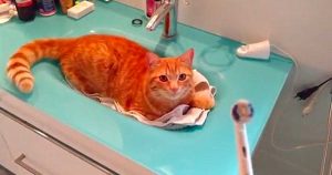 To everyone’s amazement, the cat seemed to enjoy it.